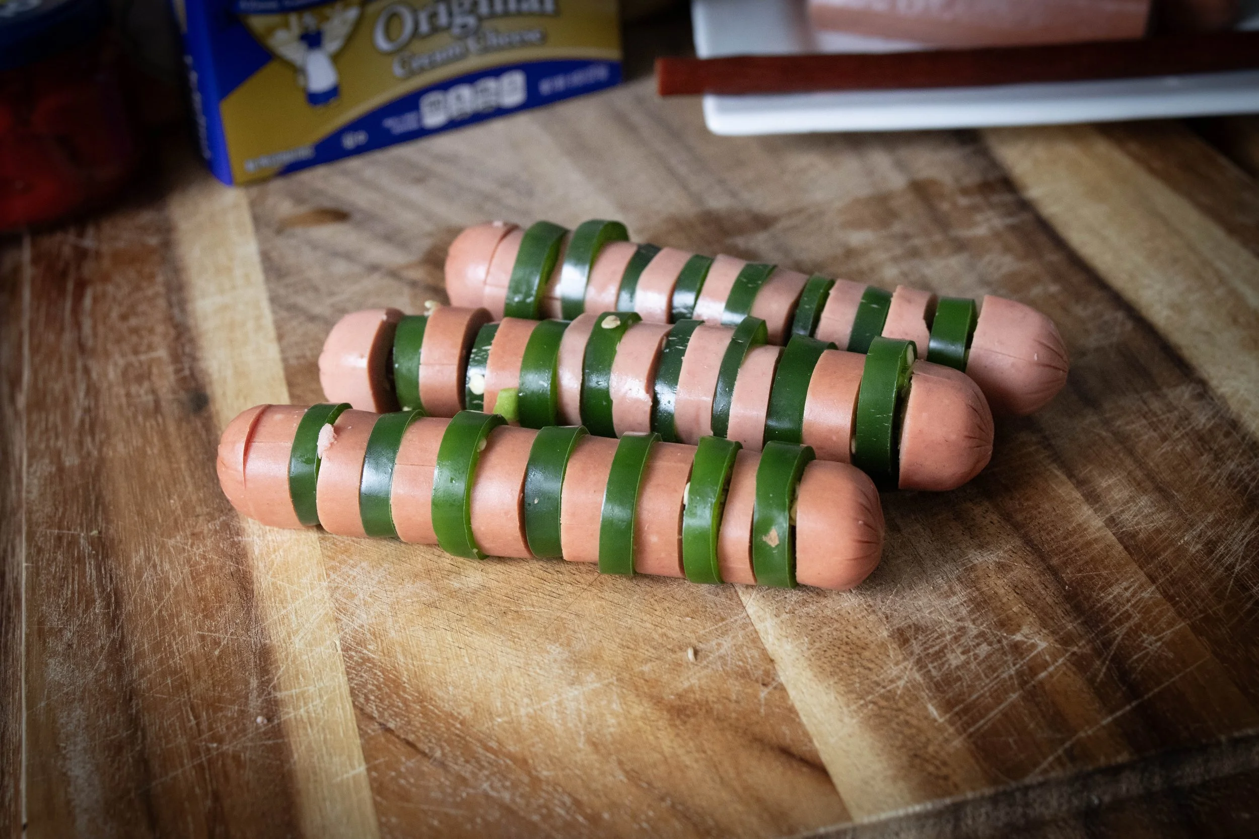 Jalapeno popper dogs with a spicy AF Slim Jim center