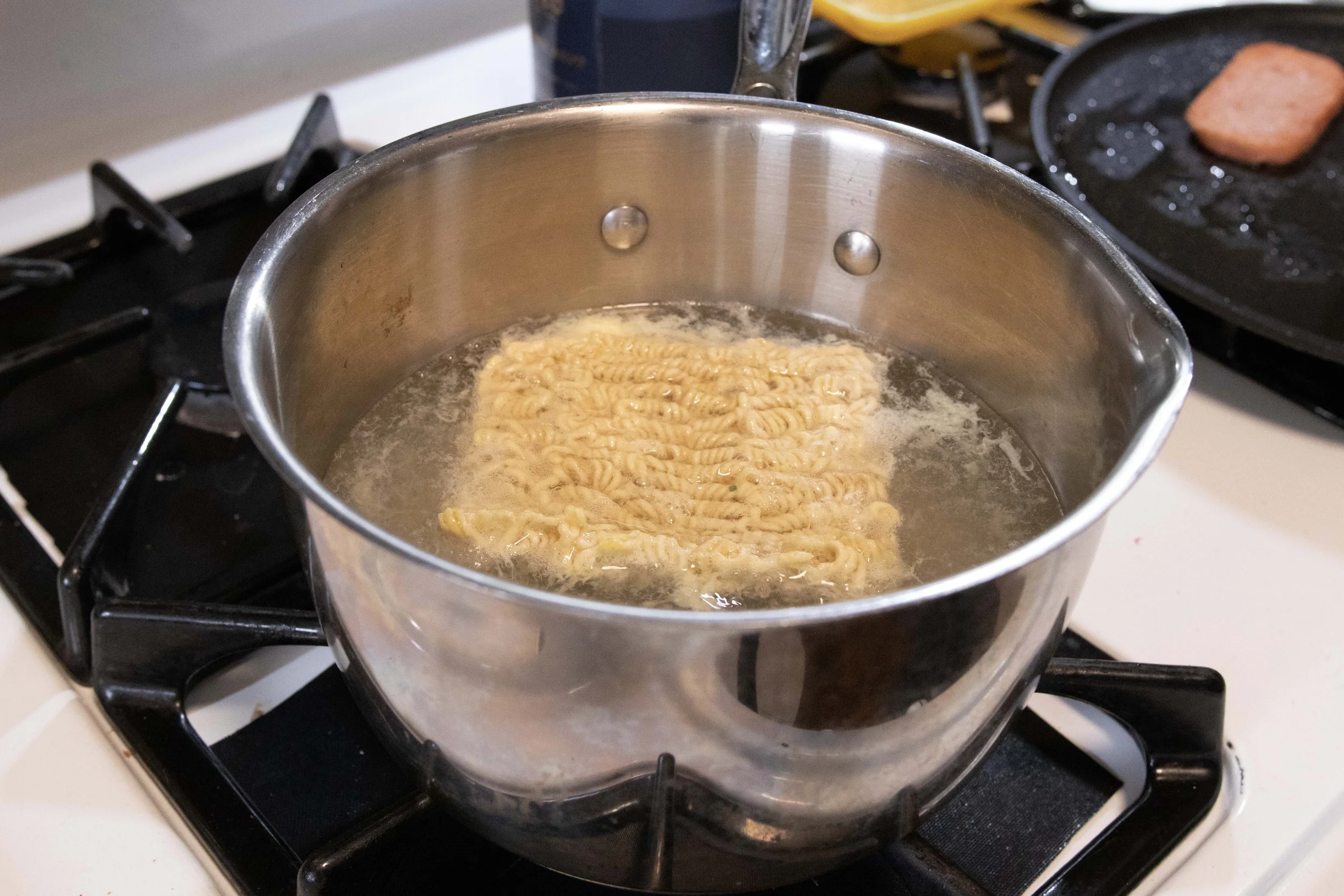 The first step to constructing this masterpiece is to cook both the ramen and the SPAM separately. You could cook them together but I don’t fuckin recommend it.