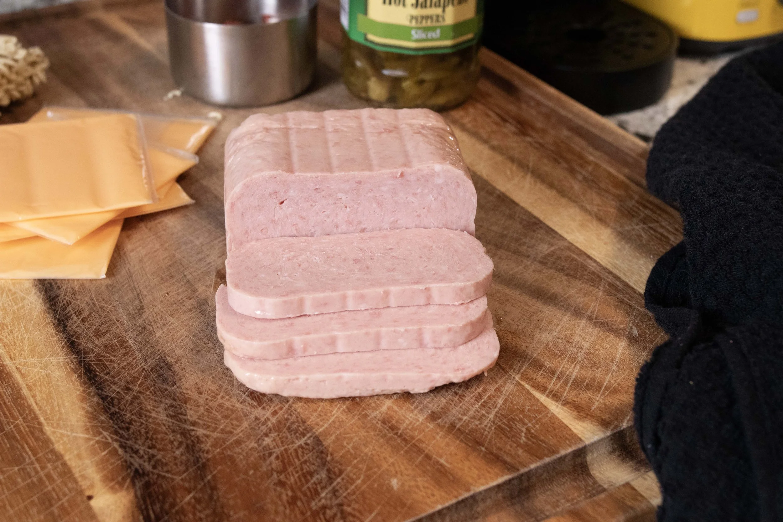 Ingredients for a spicy SPAM & ramen grilled cheese.